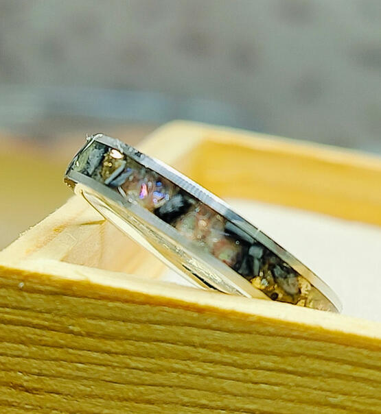 Handcrafted memorial ring made with pet fur, ashes,